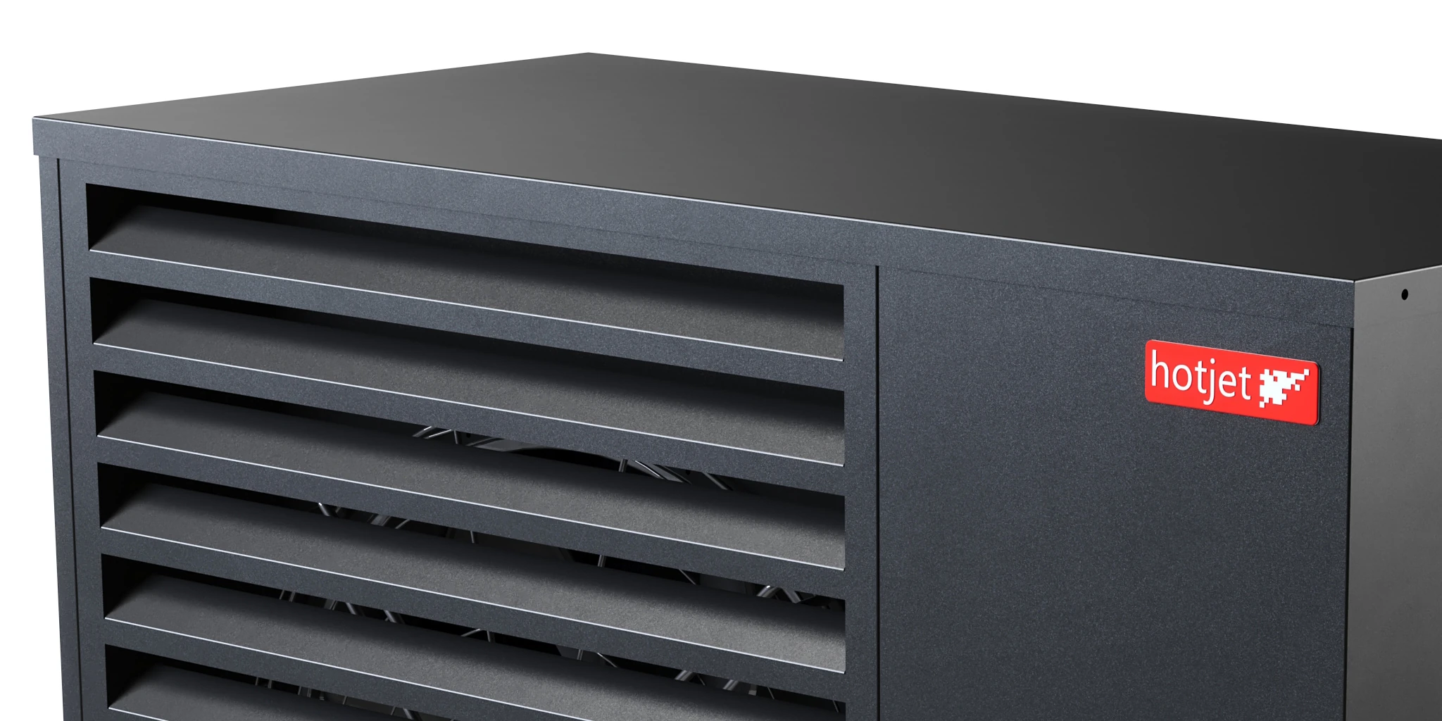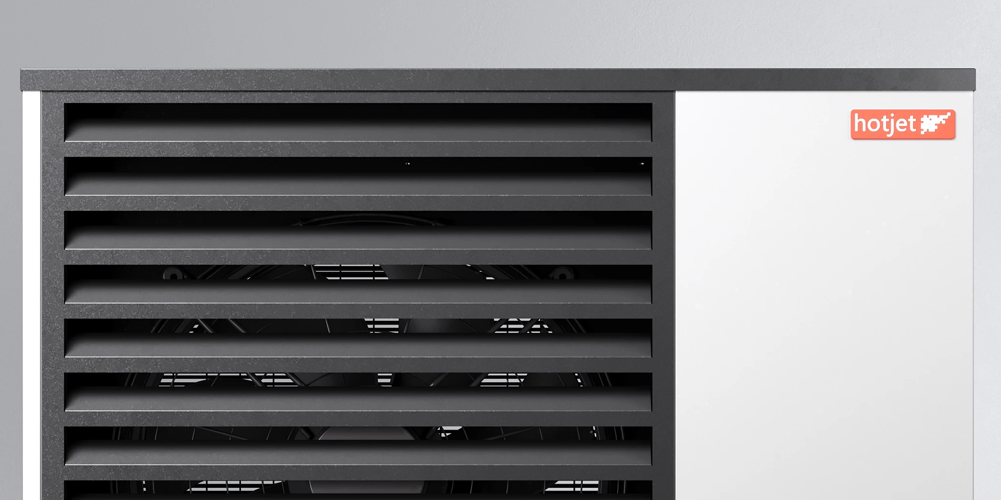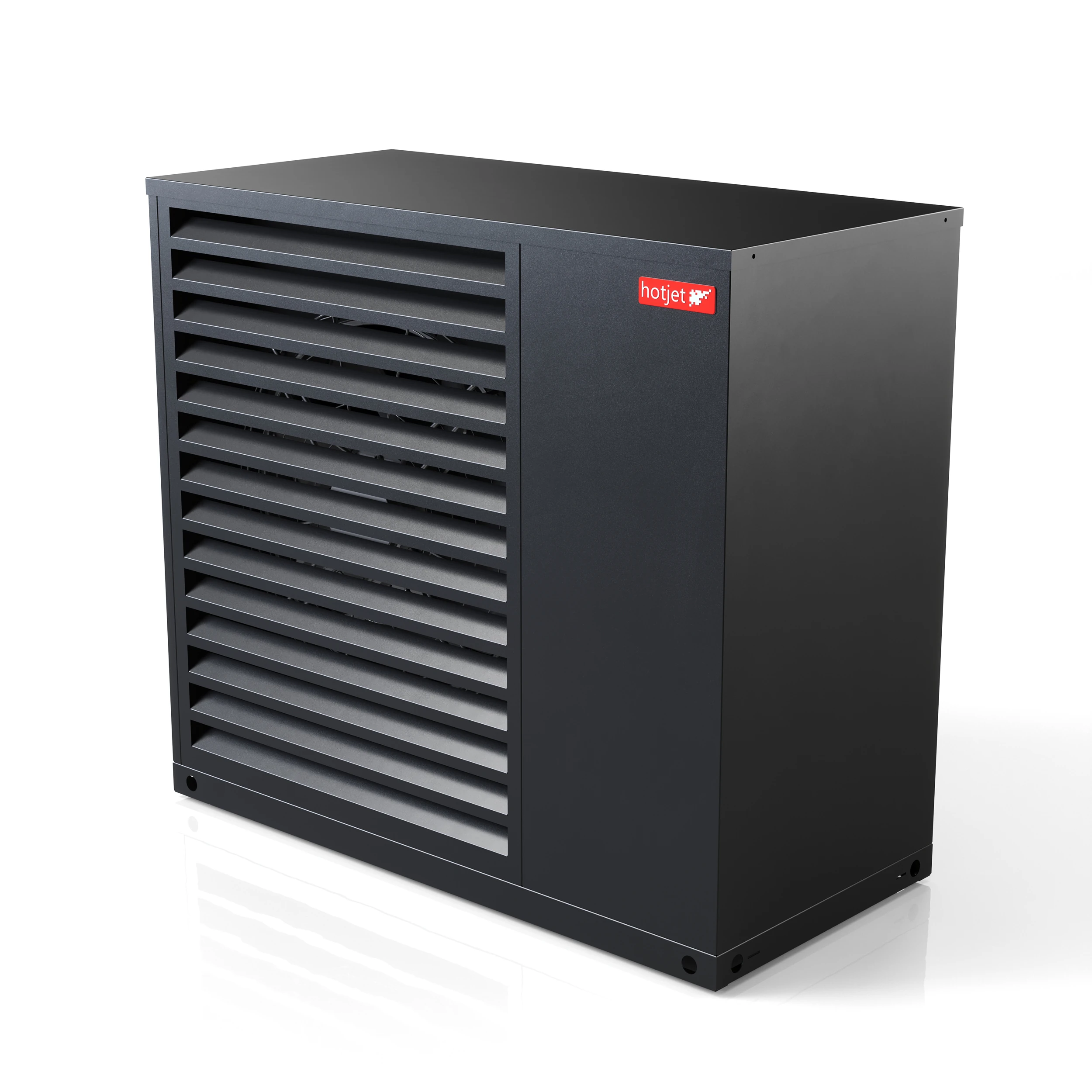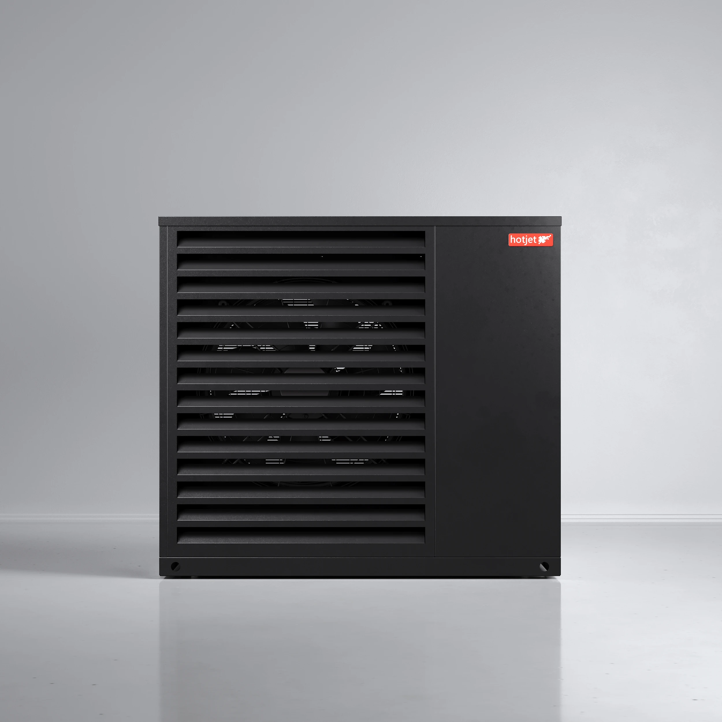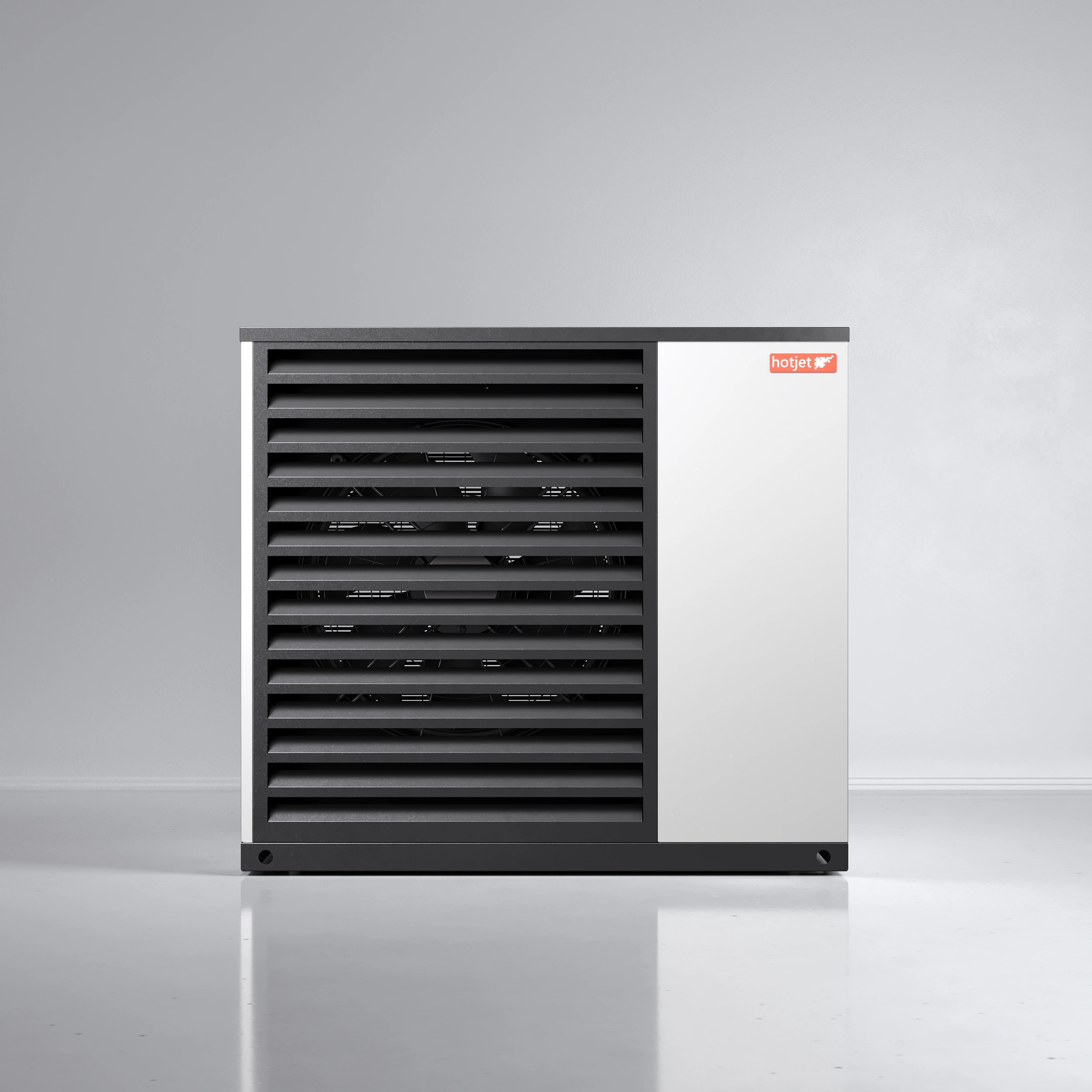 Hotjet heat pump product visualizations for Czech manufacturer. Series covers full lineup of materials and products. Created for catalogs, trade show prints and vehicle wraps with focus on clean materials, branding and studio lighting.