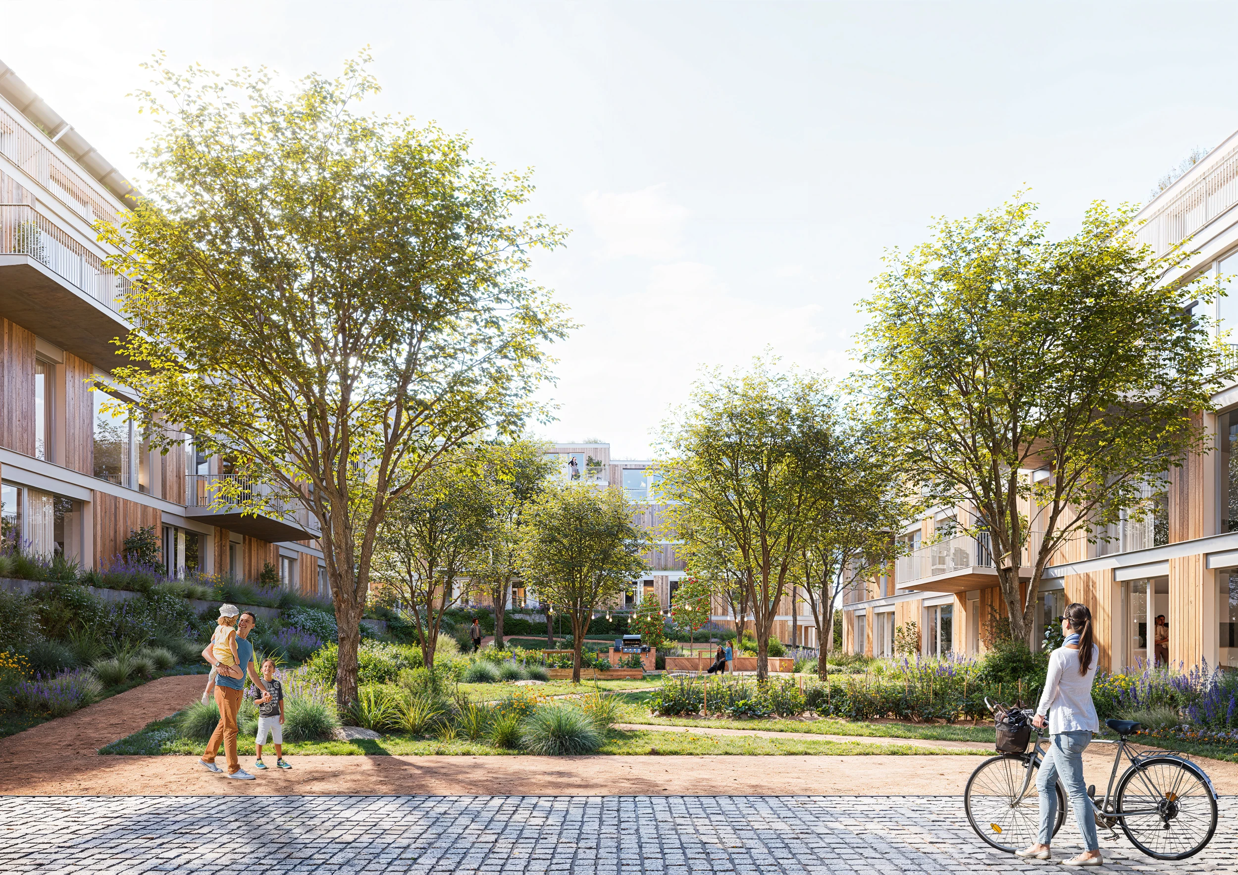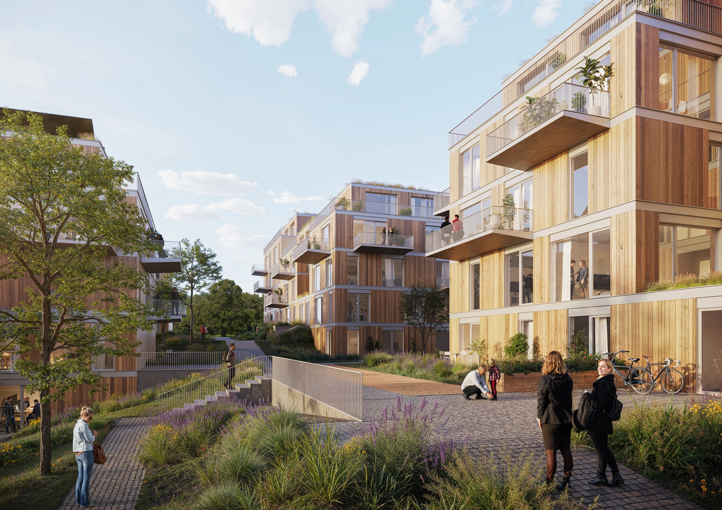 Soutěžní návrh pro novou výstavbu v pražských Radlicích. Vizualizace představují soubor rezidenčních domů se zelenými střechami, balkony a společným sdíleným prostorem. Rendery byly zvoleny z pohledu chodců pro zachycení atmosféry společných prostor v zástavě a zákres do fotografie z dronu primárně pro komunikaci s úřady.Vše v přirozeném denním světle s důrazem na komunitní charakter prostoru.